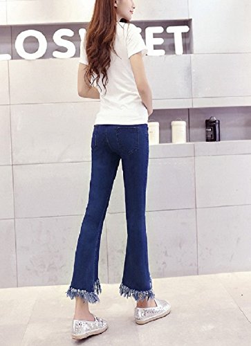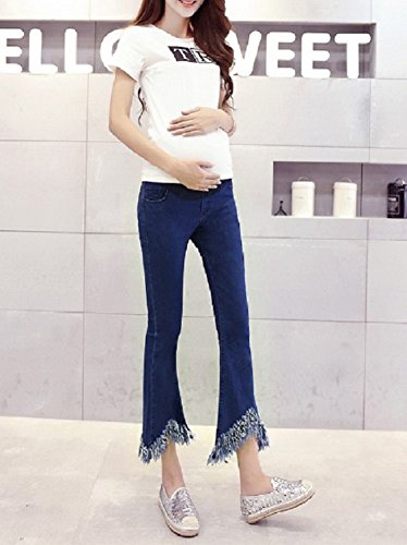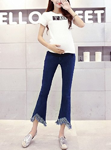 【cute×cute】裾の フリンジ が かわいい マタニティ デニム パンツ [ アジャスター 調整付き ストレッチ ジーンズ ] (M)