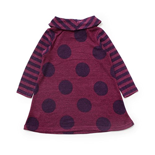 起毛感のあるニットのように見えるジャージワンピースです。ガーリーなAラインシルエットで、オフタートルの衿で大人っぽさをプラス。カラーによってボーダーやドットをミックスさせたデザインです。