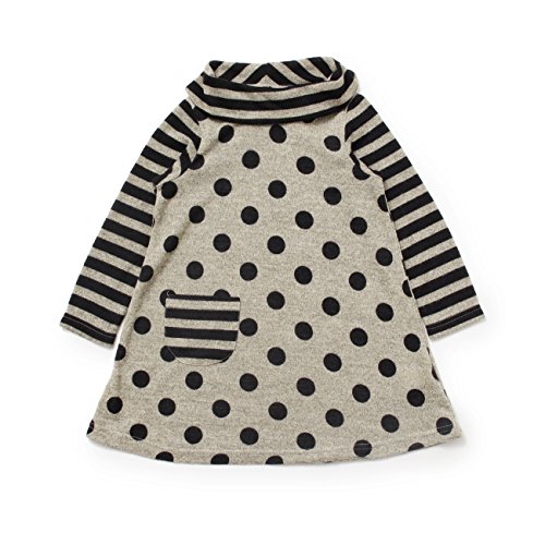 起毛感のあるニットのように見えるジャージワンピースです。ガーリーなAラインシルエットで、オフタートルの衿で大人っぽさをプラス。カラーによってボーダーやドットをミックスさせたデザインです。
