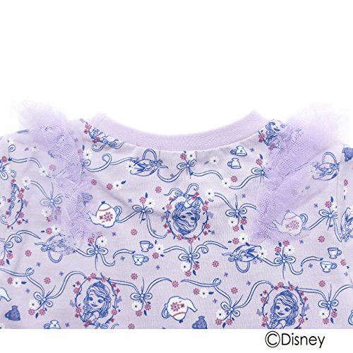 花柄にポットと『ちいさなプリンセス ソフィア』の“ソフィア”がプリントされた可愛いワンピース。スカート部分はドット柄のチュールが重ねてあり、ふんわりとしたシルエットがまさにお姫様! 肩から胸元にかけてもチュールのフリルが施されたキュートで女の子らしい一枚です。