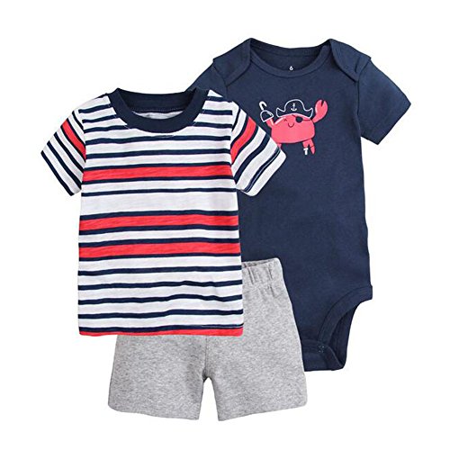 Hzjundasi 新生児 幼児 夏 赤ちゃん ベビーボーイズ コットン Tシャツ + ロンパース + パンツ セット キッズ ジャンプスーツ 服 衣装