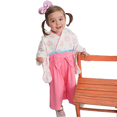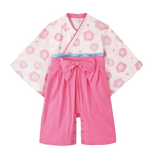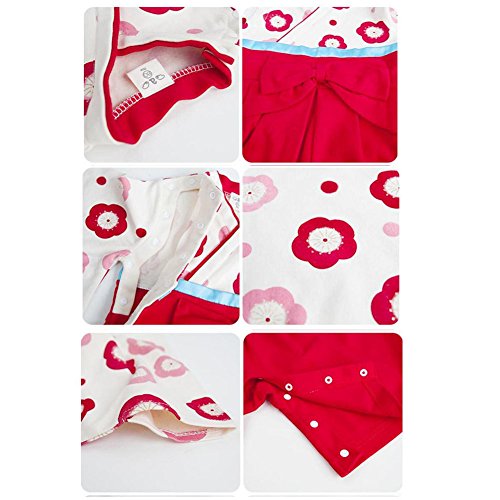 Hzjundasi 赤ちゃん 女の子 ファッション 花 印刷 ロンパース カバーオール 袴 和服 浴衣 カバーオール 幼児 赤ちゃん 和風 長袖 全開き 半開き コットン 秋冬 アウターウェア 出産祝い 衣装