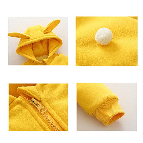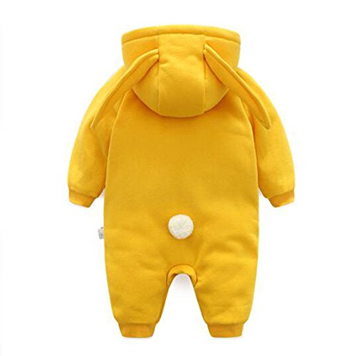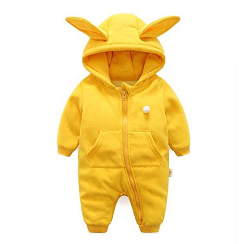 Hzjundasi 新生児 赤ちゃん 男の子 女の子 防風 可愛い ラビット 赤ちゃん 幼児 長袖 コットン ロンパース フード付き 防寒 カバーオール 春秋 アウターウェア 出産祝い 衣装 12-18ヶ月