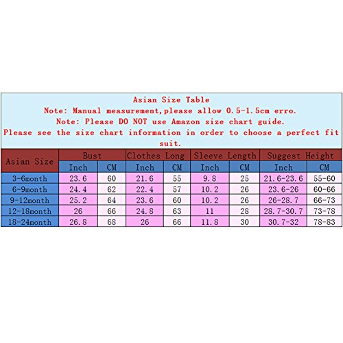 3-6M: 長さ 55cm. 袖丈 25cm. バスト 60cm. 身長 55-60cm