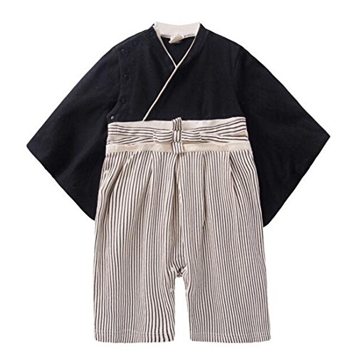 Hzjundasi 赤ちゃん 男の子 ロンパース カバーオール 袴 和服 浴衣 カバーオール 幼児 赤ちゃん 和風 長袖 全開き 半開き コットン 秋冬 アウターウェア 出産祝い 衣装