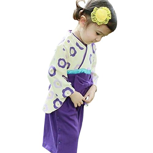 Hzjundasi 赤ちゃん 女の子 ファッション 花 印刷 ロンパース カバーオール 袴 和服 浴衣 カバーオール 幼児 赤ちゃん 和風 長袖 全開き 半開き コットン 秋冬 アウターウェア 出産祝い 衣装