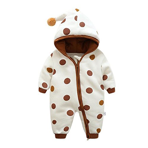 Hzjundasi 赤ちゃん 男の子 ドット パターン 保暖 防寒 ロンパース 新生児 幼児 コットン フード付き 長袖 ジャンプスーツ クリスマス 子供服 出産祝い 秋冬 アウターウェア