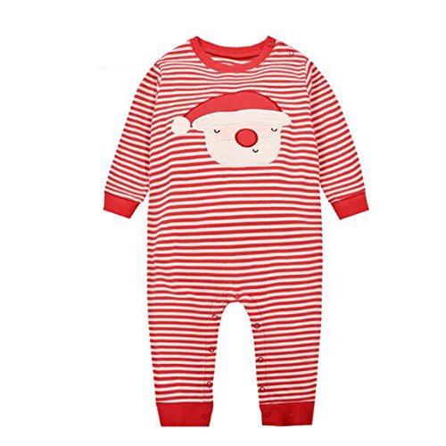 Hzjundasi 赤ちゃん 女の子 Stripe サンタ パターン 長袖s ロンパース カバーオール 新生児 クリスマス コットン ボディスーツ ジャンプスーツ パジャマ 春の秋 ベビー服 子供服 出産祝い クリスマス ギフト