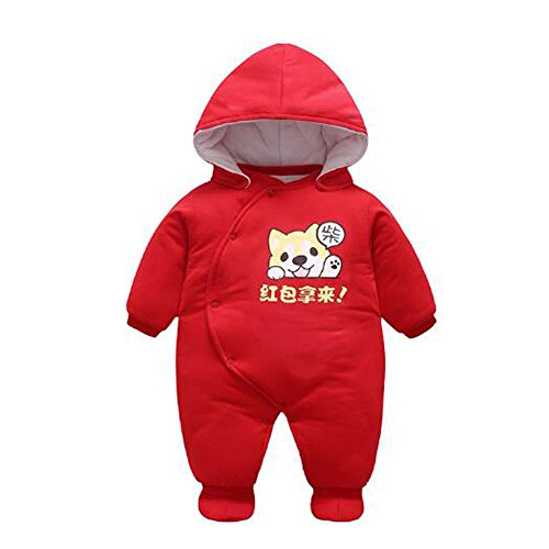 Hzjundasi 新生児 保暖 防寒 長袖 アウターウェア 赤ちゃん 女の子 赤 サンタ パターン ロンパース ジャンプスーツ コットン フード付き 秋冬 クリスマス クリスマスの服 子供服 出産祝い