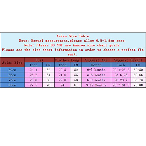 66cm:長さ 55cm.バスト 64cm. 推奨高さ59-66cm.推奨年齢3-6Months