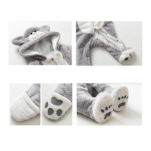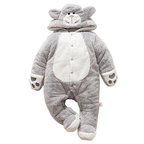 Hzjundasi ベビー 猫の形 動物の形 ロンパース 新生児 幼児 フード付き 保暖 防寒 長袖 コットン ジャンプスーツ 秋冬 アウターウェア 出産祝い 服装