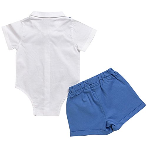 Hzjundasi 新生児 男の子 半袖 白 シャツ + ショーツ ちょう結びの装飾 紳士服 赤ちゃん 礼服 スーツ風 子供服 春夏 記念日 写真撮影 結婚式 出産祝い 衣装