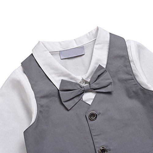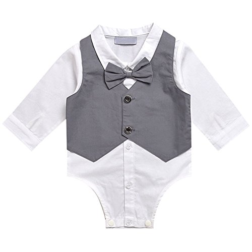 Hzjundasi 新生児 赤ちゃん 男の子 長袖 カバーオール コットン シャツ ロンパース ちょう結びの装飾 紳士服 礼服 スーツ風 子供服 秋冬 記念日 写真撮影 結婚式 出産祝い 衣装