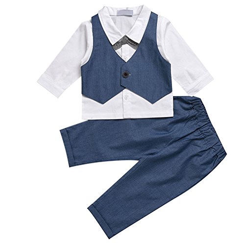 Hzjundasi 新生児 赤ちゃん 男の子 2Pcs Sets シャツ + パンツ 紳士服 礼服 スーツ風 子供服 長袖 コットン 秋冬 記念日 写真撮影 結婚式 出産祝い 衣装