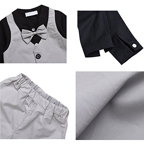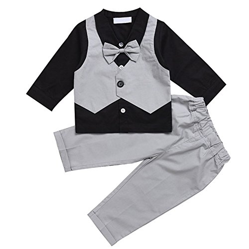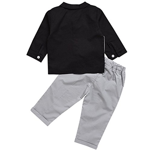 Hzjundasi 新生児 赤ちゃん 男の子 紳士服 2Pcs Suit ブラック シャツ + パンツ ちょう結びの装飾 礼服 スーツ風 子供服 長袖 秋冬 記念日 写真撮影 結婚式 コットン 出産祝い 衣装
