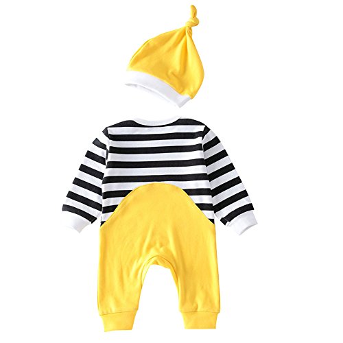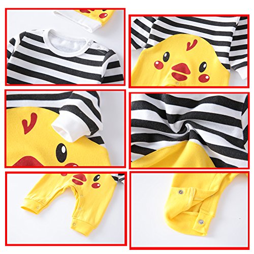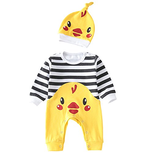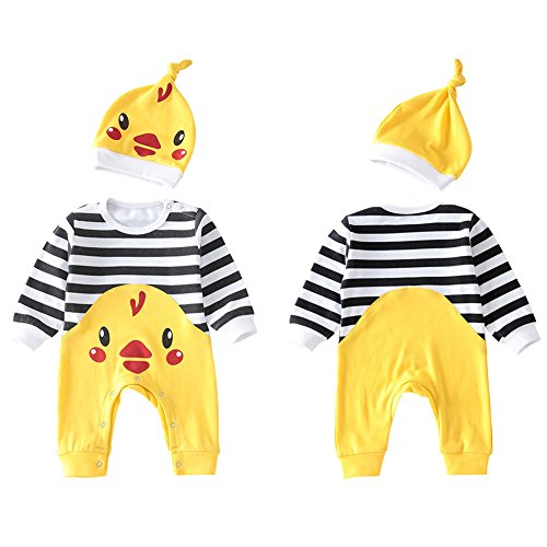 Hzjundasi ツーピースのユニセックスの赤ちゃんの少年の赤ちゃんのストライプのタイツ帽子と長袖の幼児のひよこパターンのジャンプスーツジャージージャンプスーツ