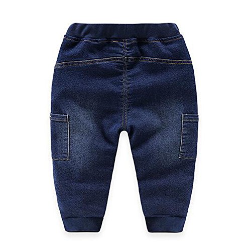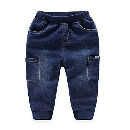 Hzjundasi 春/秋 赤ちゃん 男の子 子供 Children ジーンズ 弾性ウエスト Fashion ロングパンツ 暖かい ビンテージ ブルー デニム Pants