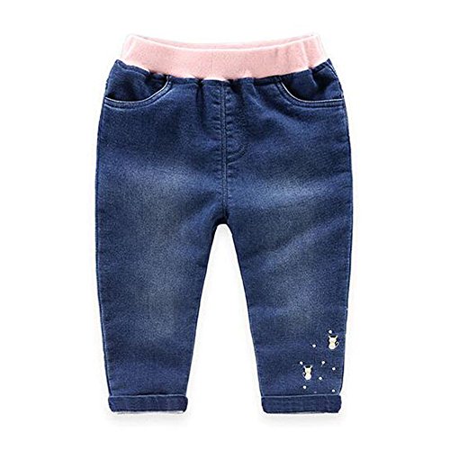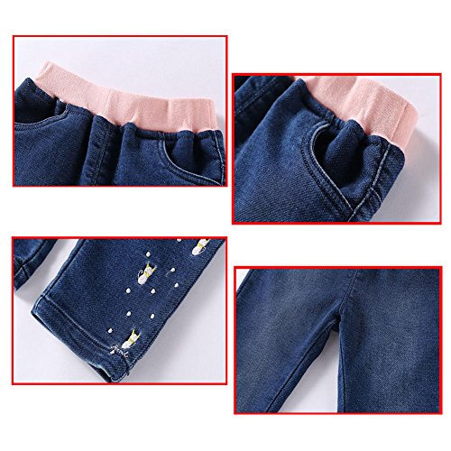 Hzjundasi 子供 女の子 刺繍 パターン デニム 赤ちゃん Soft 弾性ウエスト ジーンズ Kids 春/秋 カジュアル ズボン Fashion Pants
