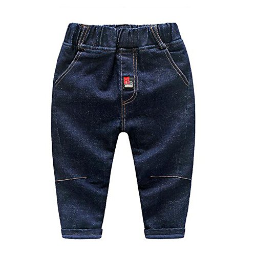 Hzjundasi Kids 厚い プラスベルベット 暖かい 冬/秋 赤ちゃん 男の子 ジーンズ ズボン デニム 子供 カジュアル 弾性ウエスト Pants