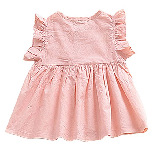 Hzjundasi 夏の女の子の蓮の側の袖のcrewneckのピンクのドレスソリッドカラーの子供の幼児の赤ちゃんの綿のベストのドレスパフのスカート