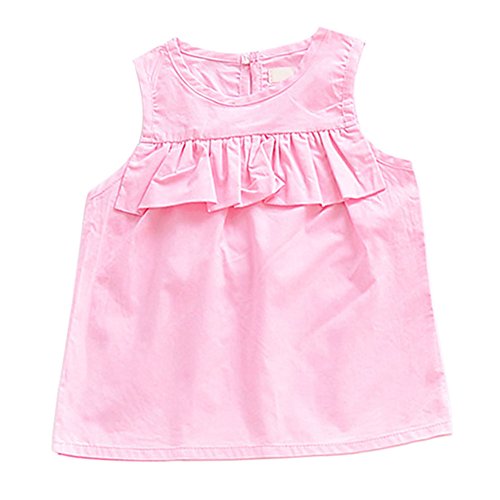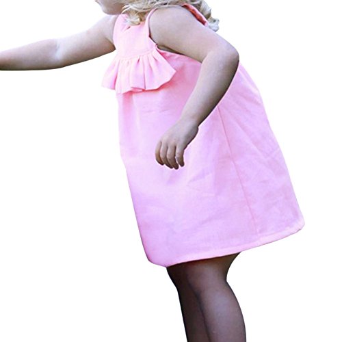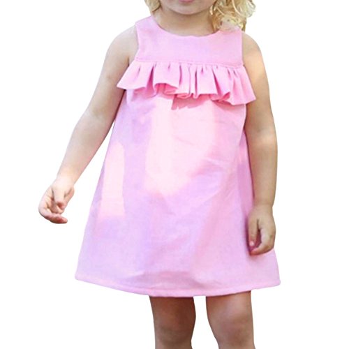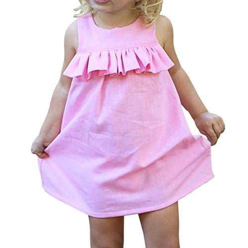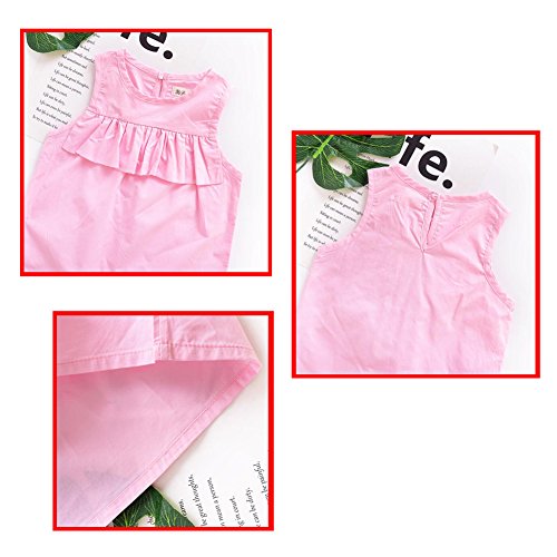 Hzjundasi 小さな女の子の赤ちゃんラウンドネックの蓮の葉の綿の袖ノースリーブのピンクのドレスの夏のベビーソリッドカラーのスカートのベストスカート