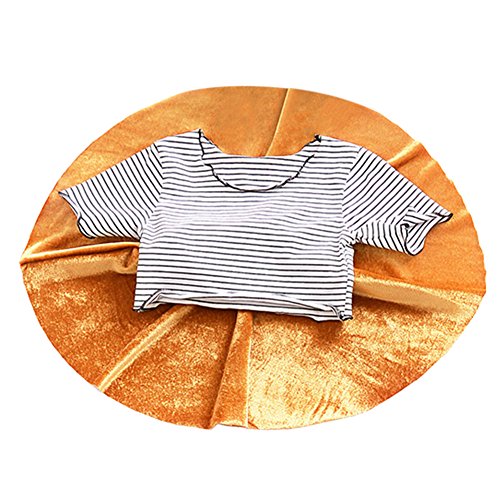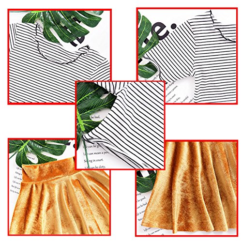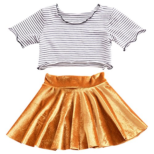 Hzjundasi 幼児の赤ちゃんの女の子の夏の二ピースコットンストライプショートスリーブTシャツ+ゴールデンベルベットショートスカート子供のスーツスカートセット
