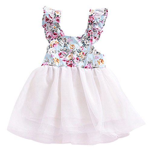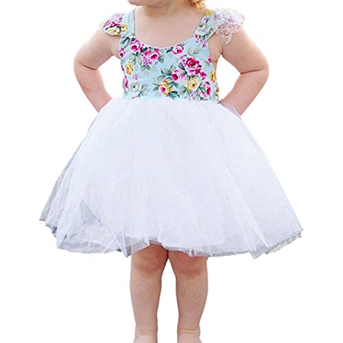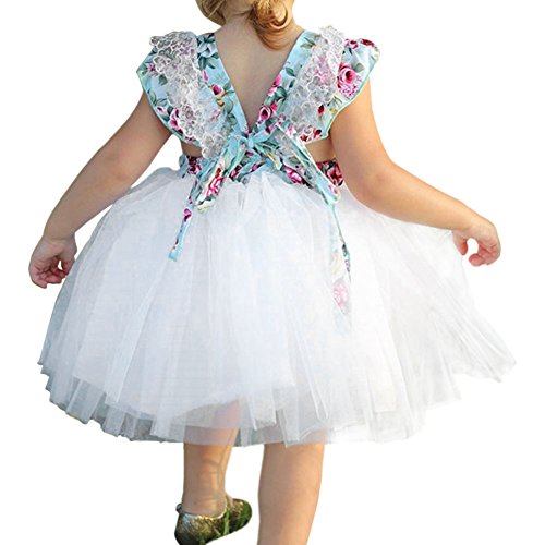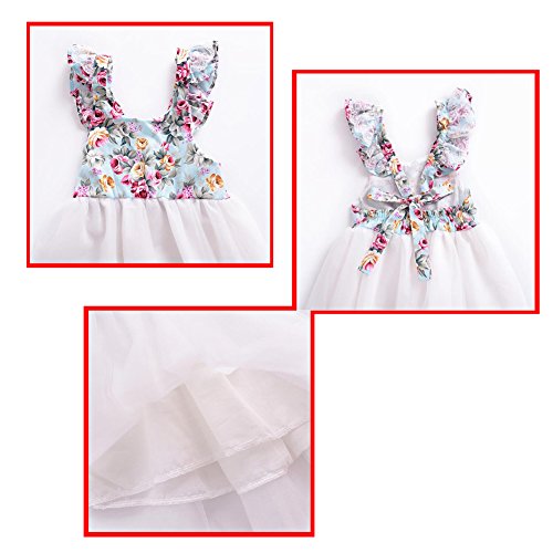 Hzjundasi 少女赤ちゃん夏の子供ノースリーブフラワープリントステッチガーゼドレスパーティープリンセスツツスカートチュールスカート