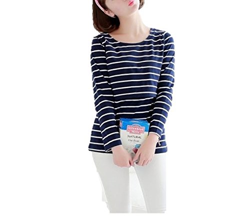Hedea (ヘデア) マタニティ 授乳口 ボーダー 長袖 (ネイビー, XL)