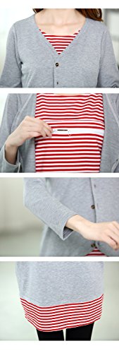- カーディガンとボーダーが一体となっていてとても可愛く、オシャレです。チャック付き授乳口も付いているので無駄な手間が省けます。