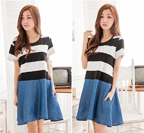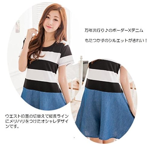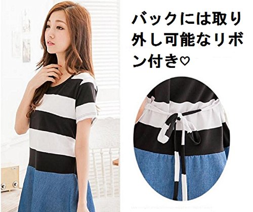 マタニティ 授乳口 デニム 白黒 ワンピース (Lサイズ)