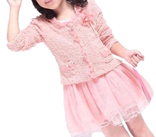 Hedea (ヘデア) 子供服 女の子 ワンピース ニット ジャケット 付き ボレロ 長袖 (ピンク 100cm)