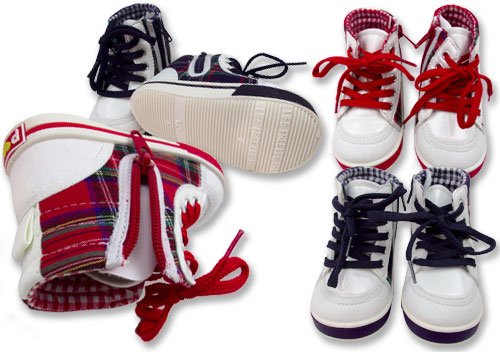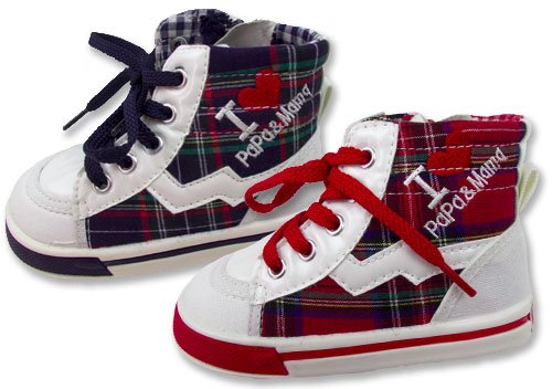 (アイラブパパ&ママ) I lovePaPa&Mama 格子柄 バスケット シューズ ベビーシューズ 14 レッド