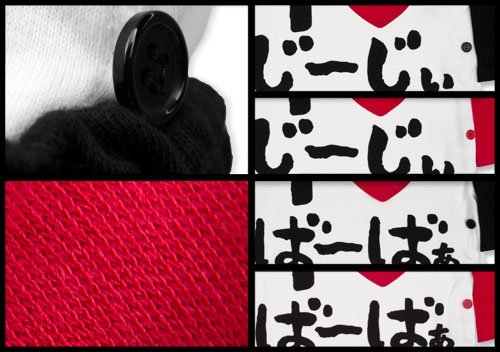 商品説明: アイラブシリーズのじ~じぃ&ば~ばぁの長そでパジャマです。 保湿性・伸縮性に優れたスムス素材使用 左肩のスナップボタンで着脱ラクラク 脇ボタン付きなので寝相の悪いベビーちゃんも寝冷えしません 存在感バッチリなアイラブシリーズのじ~じぃorば~ばぁロゴ お袖とパンツが同じお色で上下の相性も抜群。 お色はじ~じぃ(ブラック、レッド)とば~ばぁ(ブラック、レッド)の4色展開です。 サイズ: 80cm/90cm/95cm カラー: じ~じぃブラック/じ~じぃレッド/ ば~ばぁブラック/ば~ばぁレッド 素材: 本体 綿100% リブ部分 綿95% ポリウレタン5% 原産国: 中国