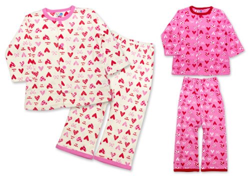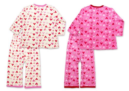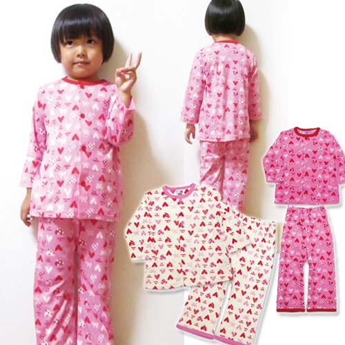 春秋物【I lovePaPa&Mama】アイラブパパ&ママハート総柄前開き長そでパジャマ 90cm アイボリー