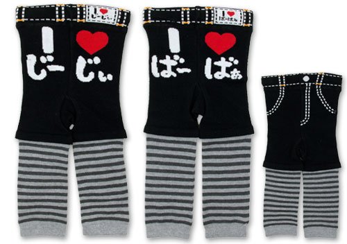 (アイラブパパアンドママ)【I lovePaPa&Mama】 アイラブパパ&ママ じ~じぃ&ば~ばぁ 丸編み プリント ボーダー柄 だまし絵スパッツ 80cm/90cm/95cm 80-95 ば~ばぁ
