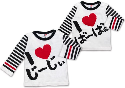 (アイラブパパアンドママ)【I lovePaPa&Mama】 アイラブパパ&ママ じ~じぃ&ば~ばぁ ボーダー袖 長そでTシャツ 80cm/90cm/95cm 95 じ~じぃ