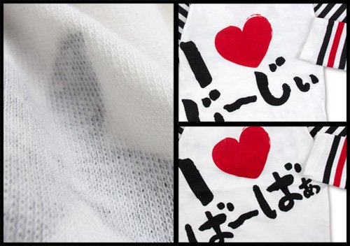 超人気アイラブパパ&ママのじ~じぃ&ば~ばぁボーダー袖長そでTシャツです。 保湿性・伸縮性に優れた綿スムス素材使用 左肩のスナップで着脱ラクラク☆ お袖部分がボーダー柄 袖から2番目だけは赤のラインで決まってる☆ アイラブシリーズのおじいちゃん&おばあちゃんロゴ☆ 大好きじ~じぃ&ば~ばぁアピール☆背中にも大きく英字プリント入り お色はじ~じぃとば~ばぁの2展開です サイズ: 80cm/90cm/95cm カラー: じ~じぃ/ば~ばぁ 素材: 本体・綿100% リブ部分・綿95% ポリウレタン5% 原産国: 中国