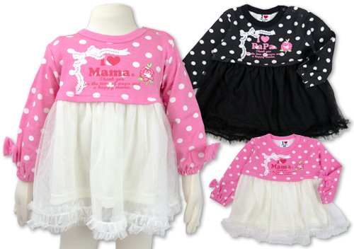 (アイラブパパアンドママ)【I lovePaPa&Mama】 アイラブパパ&ママ 袖リボンつき チュールチュニック 長そでTシャツ 80cm/90cm/95cm 95 ママピンク