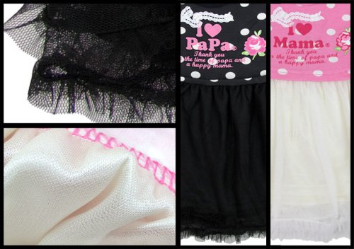 超人気アイラブパパ&ママのチュールレース使いがCUTEな長そでTシャツです。 保湿性・伸縮性に優れたスムス素材と薄くて透ける柔らかいシフォン生地チュールレース使用 左肩のスナップで着脱ラクラク☆ ゴム入り袖口の上には可愛いリボン☆ お胸と背中にエレガントなレース風リボンプリント お色はパパブラックとママピンクの2色展開です サイズ: 80cm/90cm/95cm カラー: パパブラック/ママピンク 素材: 本体・綿100% リブ・綿95% ポリウレタン5% 原産国: 中国