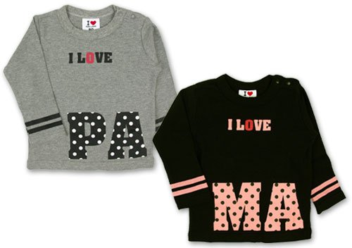 超人気アイラブパパ&ママのプリント長そでTシャツです 保湿性・伸縮性に優れた綿スムス素材使用 左肩のスナップで着脱ラクラク☆ 表は水玉柄のパパとママのプリントで後は無地のパパとママプリント お袖には二本のライン入り お色はパパ杢グレーとママブラックの2色展開です サイズ: 80cm/90cm/95cm カラー: パパ杢グレー/ママブラック 素材: 本体 綿100% リブ部分 綿95% ポリウレタン5% 原産国: 中国