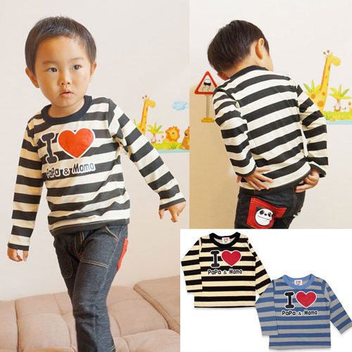 (アイラブパパ&ママ)I lovePaPa&Mama 2015 アイラブプリント ボーダー柄 長そでTシャツ 95cm サックス