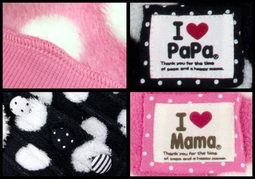 超人気アイラブパパ&ママの三つの柄違いのボタンがCUTEな襟付きソフトフリーストレーナーです 軽くて肌ざわりがとてもよく暖かなソフトフリース使用でベビーちゃんもあったか☆ ボタンは水玉柄とボーダー柄と別々なのもポイント 前身ごろ右裾にはアイラブパパ・ママの布タグ付き お色はパパブラック、ママピンクの2色展開です サイズ: 80/90/95 カラー: パパブラック/ママピンク 素材: 本体・ポリエステル100% リブ・綿95% ポリウレタン5% 原産国: 中国