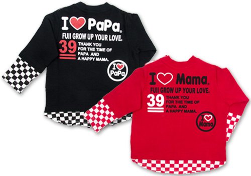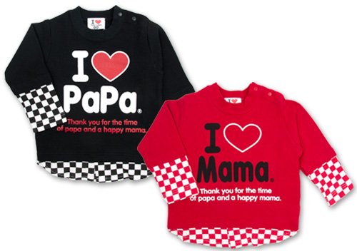 (アイラブパパアンドママ)【I lovePaPa&Mama】 アイラブパパ&ママ 重ね着風 トレーナー 80cm/90cm/95cm 95 ママレッド