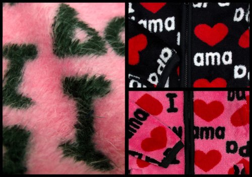 超人気アイラブパパ&ママのアイラブ総柄がCUTEなポッケ付きソフトフリースジャケットです 軽くて肌ざわりがとてもよく暖かなソフトフリースで赤ちゃんもあったか センターのチャックで着脱もラクラク☆ アイラブパパママの総柄でベビーちゃんもにっこり☆ 左右にはポッケ付でとっても便利 お色はブラックとピンクの2色展開です サイズ: 80/90/95 カラー: ブラック/ピンク 素材: 本体・ポリエステル100% バインダー部分・綿100% 原産国: 中国