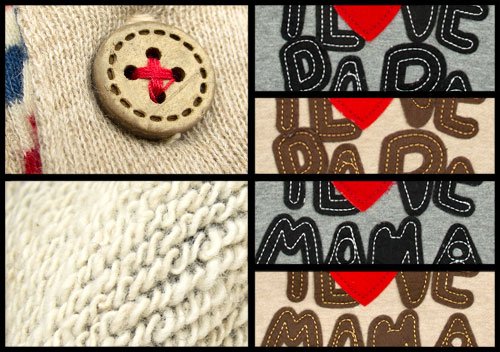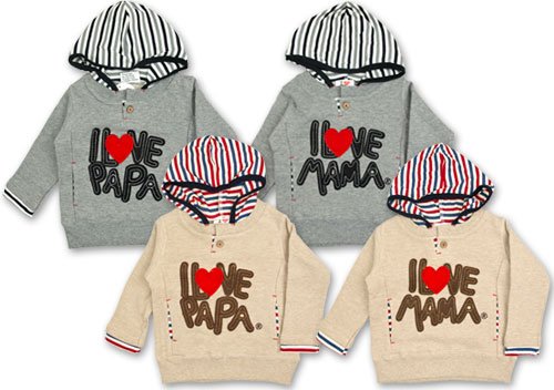 商品説明:超人気アイラブパパ&ママのアップリケがCUTEなパーカーです 本体には毛足が比較的寝ているので裏毛特有の凹凸は控え目なガーゼ裏毛、フード&袖口部分には保湿性・伸縮性に優れたスムス素材使用 お胸にはステッチもかわいいアイラブパパorママのロゴアップリケ 袖口やフード部分のボーダープリントにも注目 前身頃の左右にはポッケも付いています お色はパパ(グレー・ベージュ)/ママ(グレー・ベージュ)の4色展開です サイズ:80cm/90cm/95cm カラー:パパ(グレー・ベージュ)/ママ(グレー・ベージュ) 素材:本体 綿100%リブ部分 綿95% ポリウレタン5% 原産国:中国