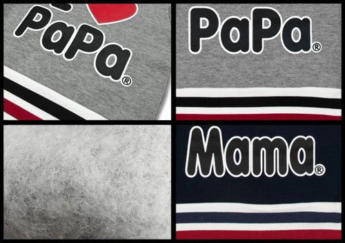 商品説明: アイラブパパ&ママのボーダー裾切り替えトレーナーです お肌に触れる面は起毛されている 左肩のスナップで着脱ラクラク 生地の特性と首周りサイズを考慮し、100号サイズのみ、肩部分のスナップ(ボタン)が付いていない商品が御座いますので、ご了解下さい。 もちろん、着用時に支障はありません。 お胸には存在感バッチリ。 アイラブシリーズのパパ&ママロゴプリント 切替裾は2色ラインが入ったボーダー柄です お色はパパ杢グレーとママネイビーの2色展開。 サイズ: 80cm/90cm/95cm/100cm カラー: パパ杢グレー/ママネイビー 素材: 本体 ポリエステル65% 綿35% リブ ポリエステル60% 綿35% ポリウレタン5% 原産国: 中国