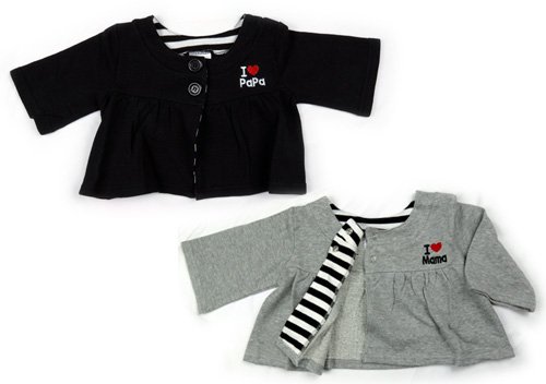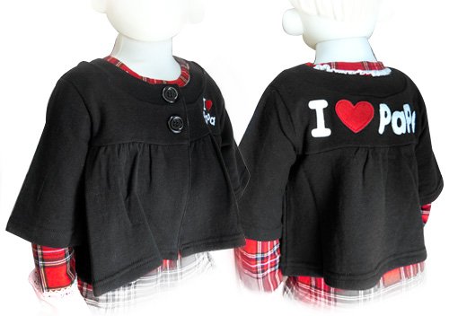 アイラブパパ&ママ短丈カーディガンです お肌にやさしい綿100%裏毛素材で少し肌寒い日に1着あるとうれしいっ ホワイトとブラックとグレーの3色で着回ししやすい色味だよ☆ この1着あればさらにCUTEなベビーちゃんに大変身*^O^*v残り少ないアイテムですのでお早めにどうぞ サイズ: 80/90/95 カラー: ホワイト/ブラック/グレー 素材: 綿100% 原産国: 中国