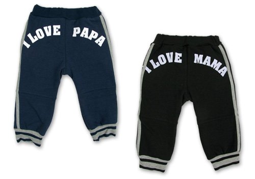 (アイラブパパアンドママ)【I lovePaPa&Mama】 アイラブパパ&ママ アイラブプリント 裏起毛 パンツ 80cm/90cm/95cm 95 パパネイビー