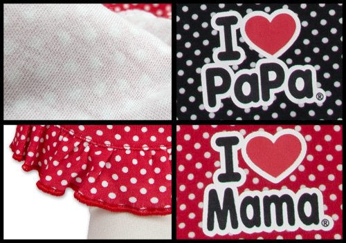 超人気アイラブパパ&ママのおしりのリボン&フリルが超カワのモンキーパンツです。 保湿性・伸縮性に優れた綿100%スムス素材使用 左足のすそにはアイラブプリント☆ 裾もCUTEなフリル付き 後ろ姿が激カワ なモンキーパンツ☆ お色はパパブラックとママレッドの2色展開 サイズ: 80cm/90cm/95cm カラー: パパブラック/ママレッド 素材: 本体・綿100% 原産国: 中国