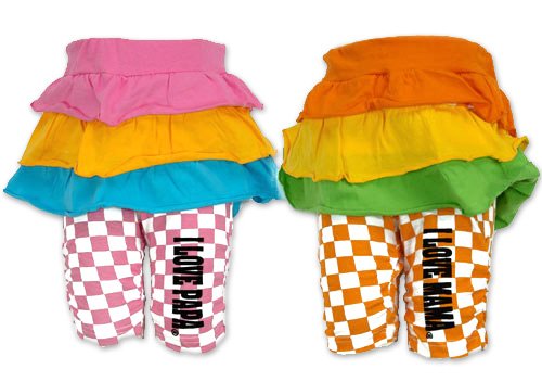超人気アイラブシリーズのカラーフリルスカッツです スカッツは、スカートとスパッツがひとつになった重ね着風アイテム 動きやすいのでおしゃれベビーちゃんにおススメです(#^.^#) フリルが激カワ 汗を吸収しやすく、ニット生地では定番の天竺綿生地使用 色はパパがピンクでママがオレンジです サイズ: 80/90/95 カラー: パパ・ピンク/ママ・オレンジ 素材: 本体・綿100% リブ部分・綿95% ポリウレタン5% 原産国: 中国